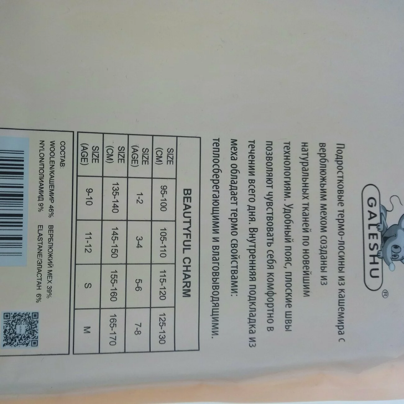 Подростковые термо-лосины из хлопка с верблюжьим мехом, два шва сзади, состав 46% хлопок 9% полиамид 39% верблюжий мех 6% эластан.